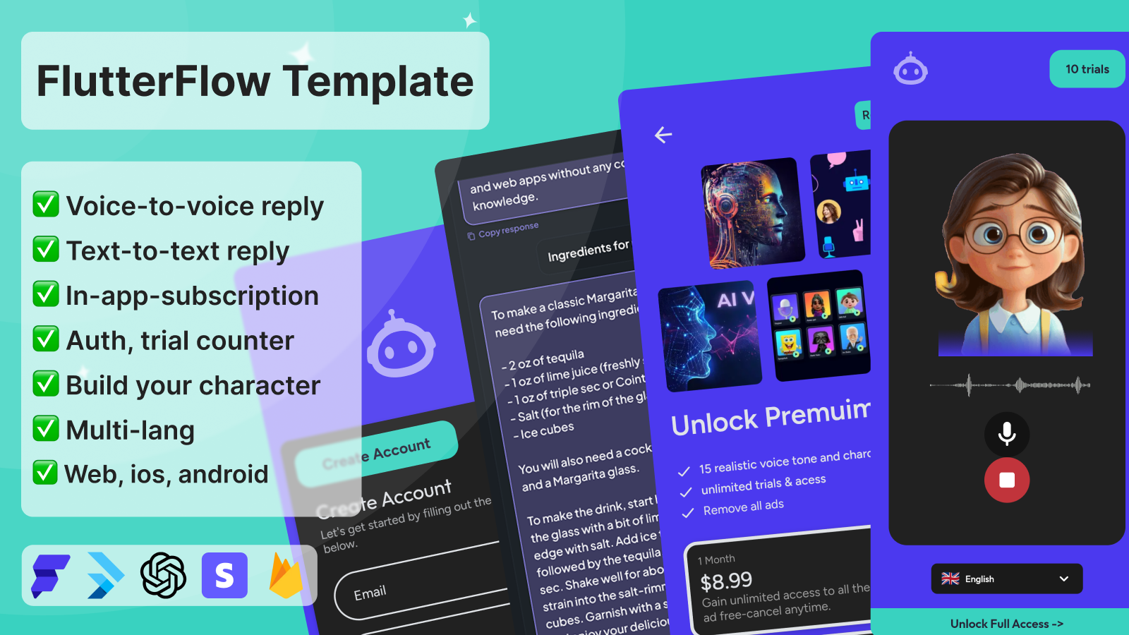 RapidAsk is a FlutterFlow-powered template that lets you build custom AI apps for web, iOS, and Android—without hassle.